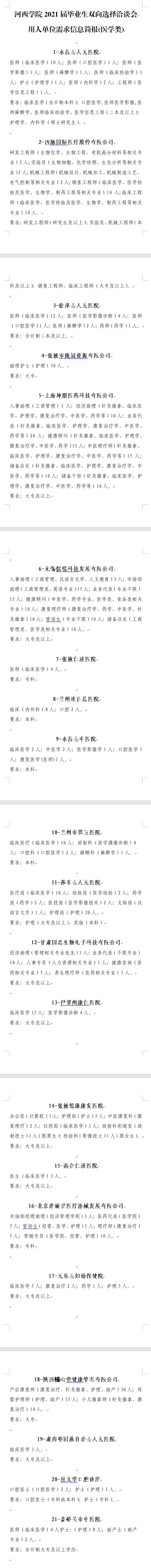 太阳成集团tyc7111cc12月28日医学类双选会参会单位需求信息汇总(更新中)