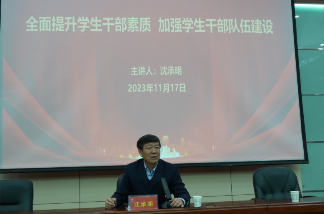 11月18日上午,护理公司党委书记沈承明为公司2023年团学组织工作人员培训班作首场报告,报告以《全面提升员工干部素质 加强员工干部队伍建设》为题进行讲授。